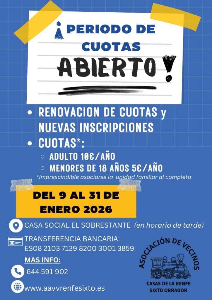 6 de Enero de 2.026.- La Asociación de Vecinos informa de la apertura del período de pago de las cuotas ...